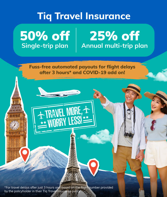 Enjoy 50% off single-trip & 25% off annual multi-trip Tiq Travel plans. Includes pre-ex medical coverage and COVID-19 add-on too!