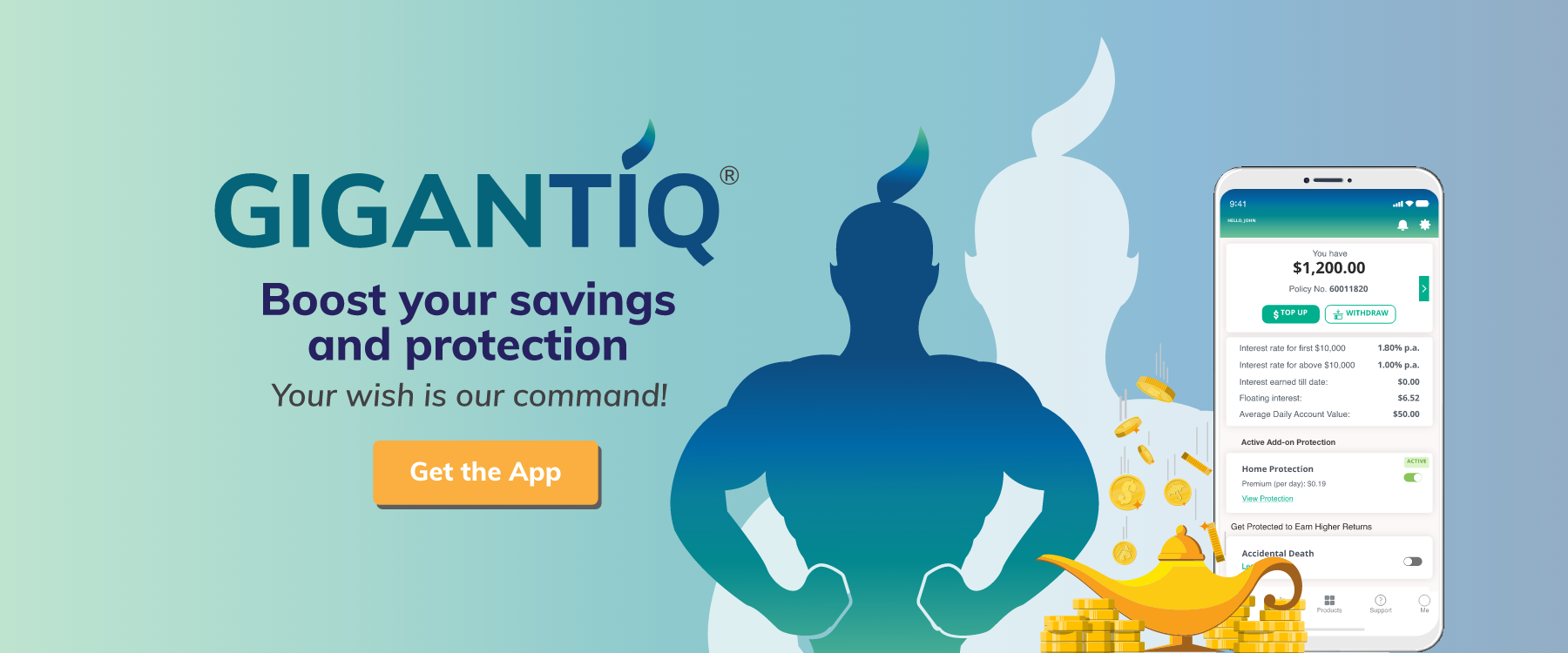 GIGANTIQ® is an all-in-one insurance savings plan that helps you to Save, Protect and Secure your life goals. Maintain the lifestyle you enjoy while taking control of your personal finance on-the-go.