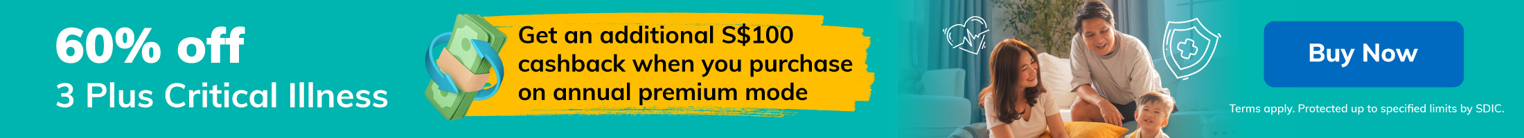 This policy is underwritten by Etiqa Insurance Pte. Ltd. This content is for the reference only and is not a contract of insurance. Full details of the policy terms and conditions can be found in the policy contract. The information contained on this product advertisement is intended to be valid in Singapore only and shall not be construed as an offer to sell or solicitation to buy or provision of any insurance product outside Singapore. You should seek advice from a financial adviser before deciding to purchase the policy. If you choose not to seek advice, you should consider if the policy is suitable for you. As this product has no savings or investment feature, there is no cash value if the policy ends of if the policy is terminated prematurely. This policy is protected under the Policy Owners’ Protection Scheme which is administered by the Singapore Deposit Insurance Corporation (SDIC). Coverage for your policy is automatic and no further action is required from you. For more information on the types of benefits that are covered under the scheme as well as the limits of coverage, where applicable, please contact us or visit us the Life Insurance Association (LIA) or SDIC web-sites (www.lia.org.sg or www.sdic.org.sg). This advertisement has not been reviewed by the Monetary Authority of Singapore.