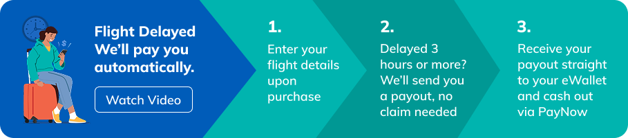 In case of a flight delay, technology helps us track the status of your flight and pay your claims automatically into your eWallet. You can cash out the claims via PayNow conveniently.