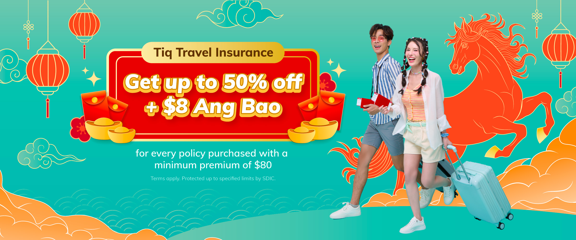 Don’t let unexpected events dampen your festive getaway. This Chinese New Year, travel with peace of mind with Tiq Travel Insurance from just $9.75* so you can focus on making memories, not managing mishaps. Whether it’s one reunion trip or multiple holidays this year, Tiq has you covered.